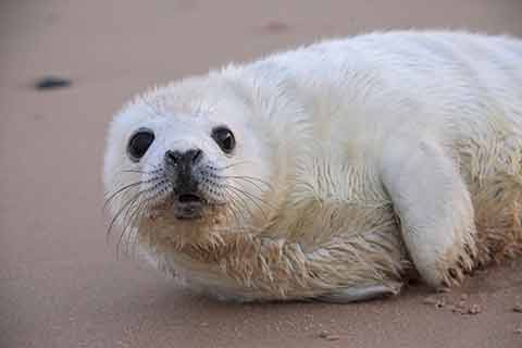 September to December is the breeding season for grey seals. Pups are born with a fluffy white coat and don't enter the sea for the first two to three weeks. Don't approach a seal pup on its own, or allow dogs or other animals to harass them, as they can give a nasty bite - and if a seal pup is scared into the water, it could be washed out to sea and get lost.