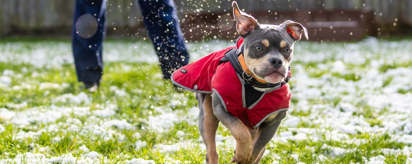 - Dogs with short coats — animals with shorter coats may be more likely to feel the effects of cold weather. Keep them cosy with a coat for walks, and a snuggly blanket in the home.