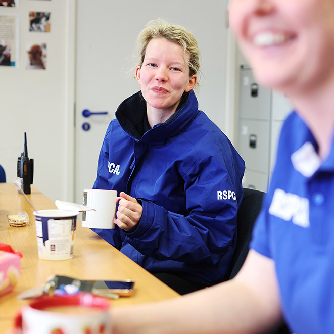 The RSPCA works in communities through its 135 branches in England and Wales, with more than 10,000 volunteers doing everything from collecting animals, fostering, dog walking, and campaigning to becoming a wildlife friend. We work in England and Wales, with around 400 animal rescuers investigating cruelty and neglect, four hospitals and clinics, as well as 14 animal centres and four wildlife centres offering expert treatment, rehabilitation, behavioural and rehoming services. And we work around the world, beyond borders, using our voice, our expertise and our profile to drive change for animals in partnership with others.