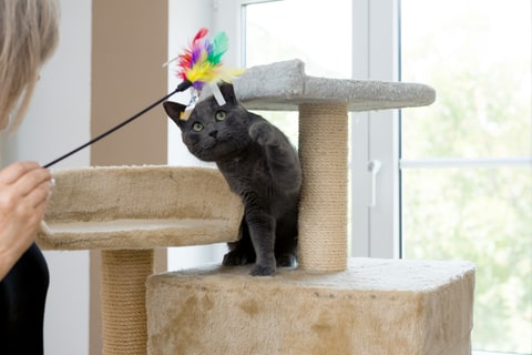 Wand toys are simple sticks with enticing items attached for cats to chase and capture, giving them a safe outlet for their hunting instincts. Using a wand keeps sharp claws and teeth away from your hands, so you can enjoy playtime safely!