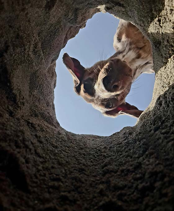 I took this photo to capture my dog Ziggy’s adventurous spirit. On the beach in Cornwall, he dug a hole big enough to hide inside, and peered down like he’d just unearthed pirate gold. His proud face is clearly thinking: “I did that!” The photo took multiple attempts to achieve, as he kept looking everywhere but into the hole, while accidentally throwing sand on the camera with his paws.
