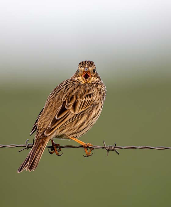 I took this image of a corn bunting from the car window when we were driving around looking for wildlife really early one morning. I heard him before I saw him as he was singing his heart out. I slowly lifted up the camera and managed to capture him looking straight at me with his beak wide open.